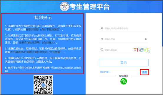 1.务必由考生本人进行注册操作,确保信息真实有效。注册后信息将无法自行修改,请认真核对填写内容。