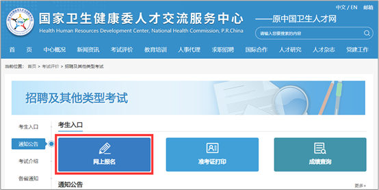 1.进入官方网站“招聘及其他类型考试”专区,点击“网上报名”。