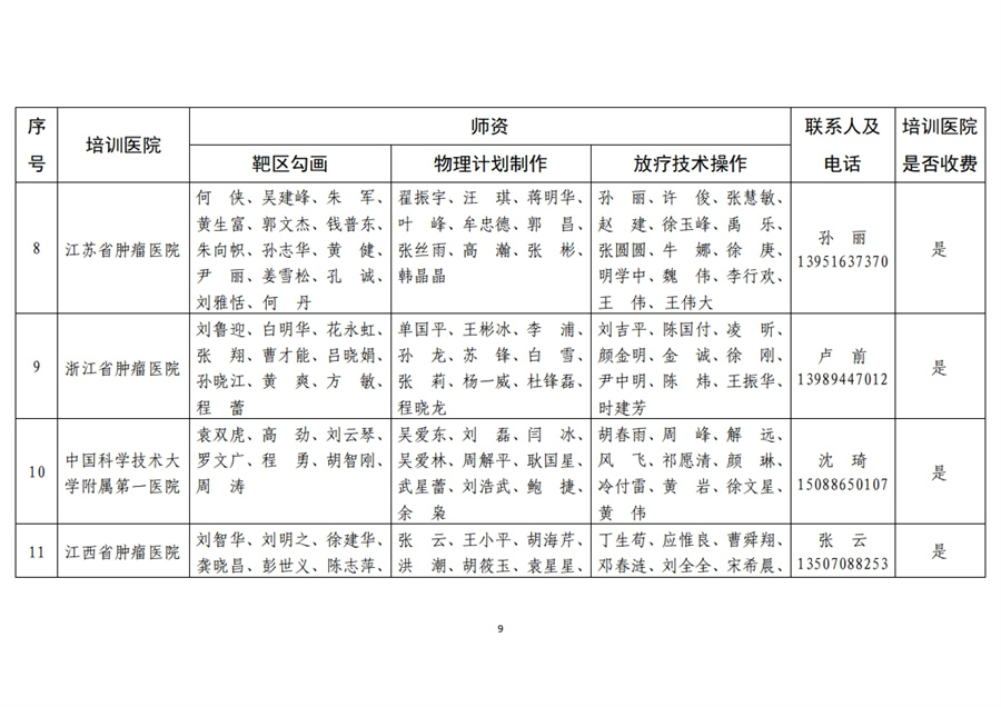 20家肿瘤精准放疗专项技能培训医院,培训医院名单及学员接收计划详见附件。